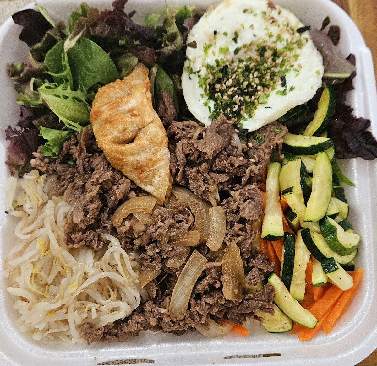 Whenever I crave asian food I normally order something fried instead of something more authentic like a bowl or soup in Riverside County because of the number of times that I've been disappointed at other places. To be fair I grew up in LA where asian food's just on a different level! So naturally I was hesitant to order a bowl from Chef's Kitchen.. but Wow...I'm soo glad that I tried their bibimbap! The marinade of the spicy pork was perfection, the spice & consistency of the red chili paste was spot on, & the veggie/rice portion was Huge for the price (not to mention fresh!). I'm Korean & I've got to say.. hats off to the chef for nailing bibimbap. I'm pleasantly surprised, I wish I ordered this dish sooner. It totally reminds me of home~ Btw, red chili paste is totally an acquired taste, so I think it's a great idea that the sauce comes on the side (for anyone who might not be a fan). I slathered my entire bowl with it though. So good~ Also, their yellow pickled radish went SO WELL with this dish (it's also an acquired taste for some) :)